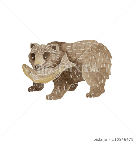 木彫りの熊 日本の郷土玩具 民芸品 伝統工芸 水彩 イラスト