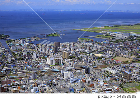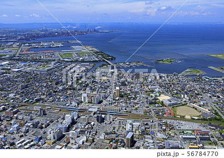 千葉県木更津港入口上空から木更津港と木更津市街を望む