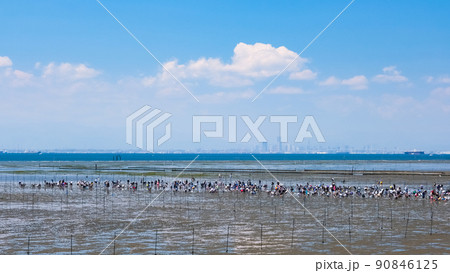 千葉県木更津市 GWで賑わう木更津海岸潮干狩場