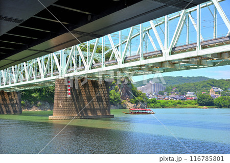 《愛知県》犬山市 犬山橋と木曽川鵜飼の遊覧船