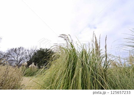 信州 御岳ブルーラインからススキ越しに見る雲海と中央アルプス
