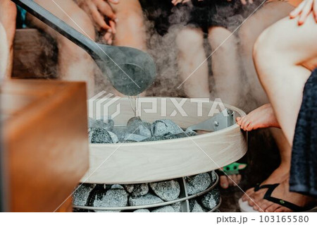 サウナでロウリュを楽しむ人