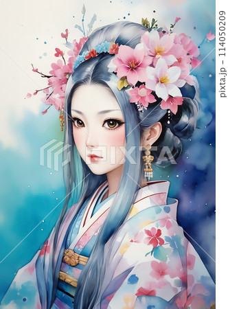 日本の女神 水彩画 スピリチュアル 開運 イラスト アート
