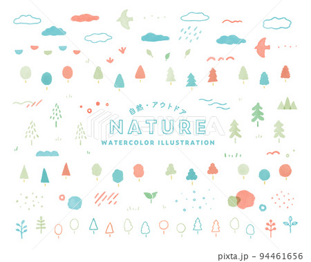 木の水彩イラストセット 自然 アウトドア ナチュラル 植物 手描き かわいい エコ 飾り 森林 公園