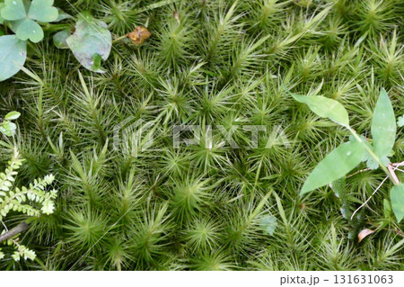 羽黒山神社の杉の木に生えているスギゴケと湿気を好む植物たち