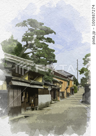 水彩画風 松阪 豪商のまち松阪 観光交流センター 三重県松阪市