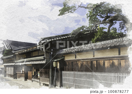 水彩画風 松阪 旧長谷川治郎兵衛家 三重県松阪市