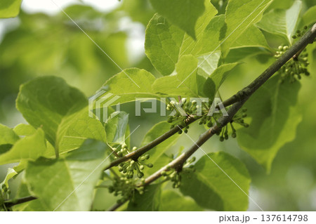 アオハダ(学名:Ilex macropoda)の蕾 春の雑木林 東北