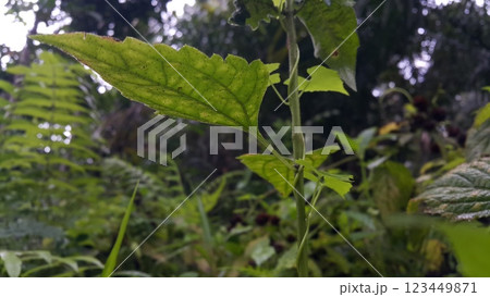 Photos of plant leaves taken in the forest.