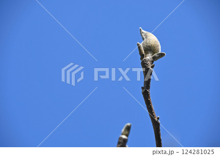 春の花の背景素材・紫木蓮(シモクレン)のつぼみ・横位置