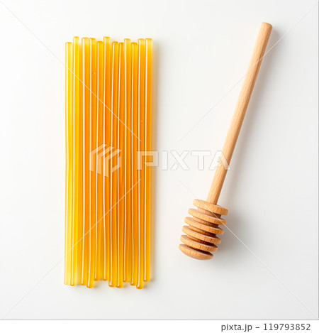 Honey Sticks and Straws on White Background