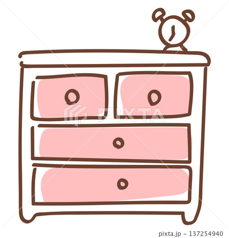 天板に目覚まし時計の乗った手書きのかわいいチェスト