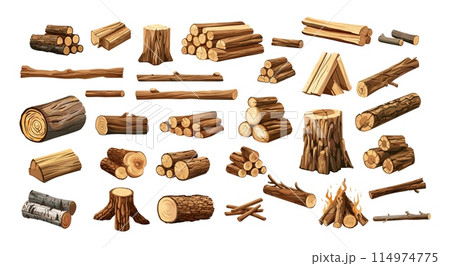 Firewood pile cartoon vector set. Logs bonfire branches sticks forest wood tree burning bundle dry brushwood log trunk, bright illustration isolated on white background
