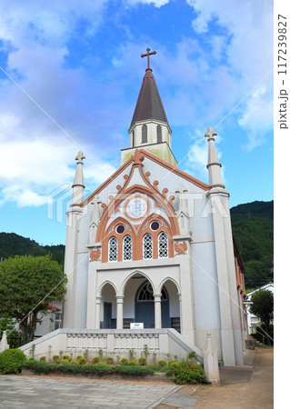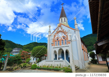 【島根県】晴天の津和野カトリック教会(殿町通り)
