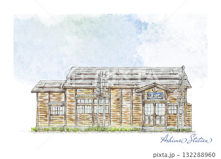 色鉛筆で描いた、北海道の明日萌駅のイラスト