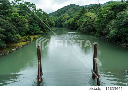三重県伊勢市 宇治橋鳥居付近より五十鈴川