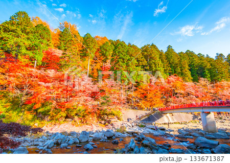豊田市の香嵐渓の秋の紅葉と巴川の風景(愛知県)