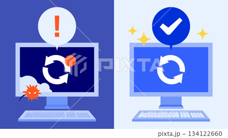 【サイバーセキュリティのためのイラスト】未更新OSを自動アップデートしウィルスからデータを守るオフィ