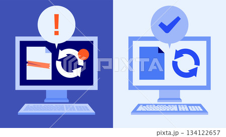 【サイバーセキュリティのためのイラスト】未更新ファイルを自動アップデートするオフィスの仕組み