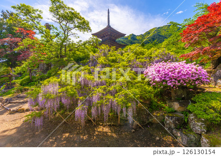 前山寺 藤の花の名所 「未完成の完成の塔」の三重塔