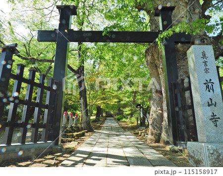 長野県上田市の初夏 新緑の前山寺 三重塔