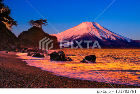 土佐の裏桂浜の未明と赤く染まった富士山合成