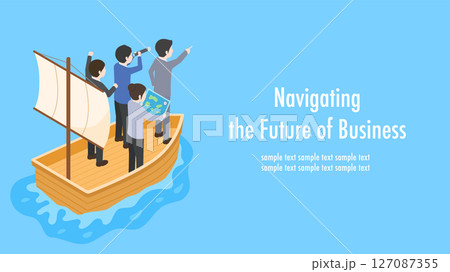 船に乗って航海をしているビジネスマンの男女
