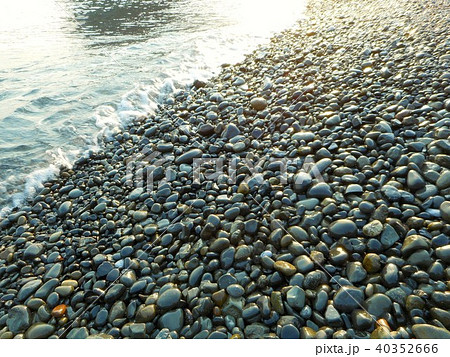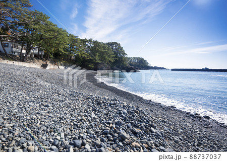 碁石海岸 碁石浜 まるで碁石のような黒い玉砂利の浜 波に洗われる玉砂利の音が心地よい
