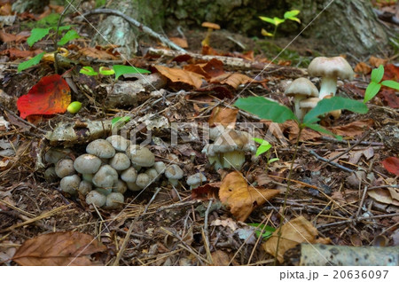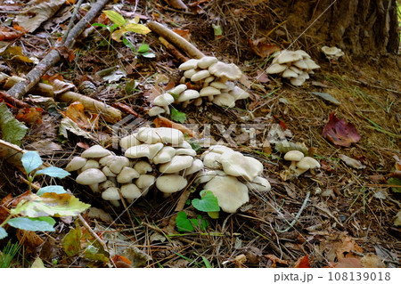 2023年猛暑後の秋 株立ちのホンシメジのある風景