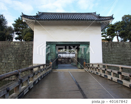 雪の二条城 内堀と本丸櫓門 京都市中京区