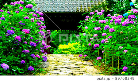 三河のあじさい寺の庭園の 紫陽花 1