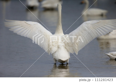 千葉県印西市本埜の白鳥の郷 ハクチョウの羽ばたき