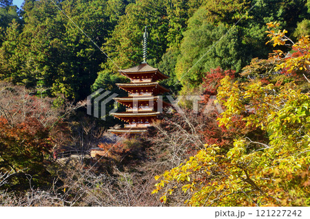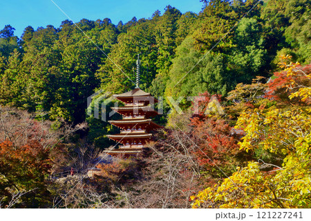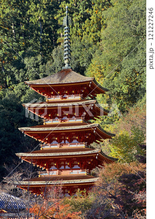 秋の長谷寺・五重塔・遠景(奈良県・桜井市)