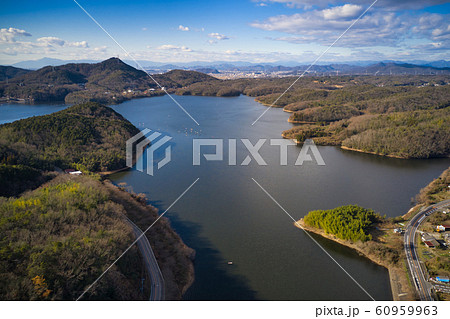 空からみた入鹿池 愛知県犬山市(ドローンによる空撮)