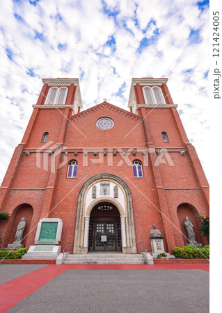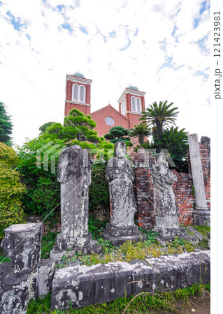 浦上天主堂の正面と石像 長崎県長崎市本尾町