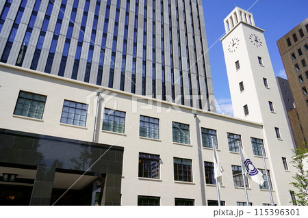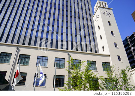 日本の川崎都市景観 2023年秋利用開始予定の川崎市役所新本庁舎。シンボリックな時計塔が魅力的だ