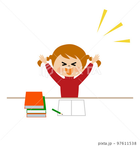 勉強で喜ぶ女の子のイラスト素材