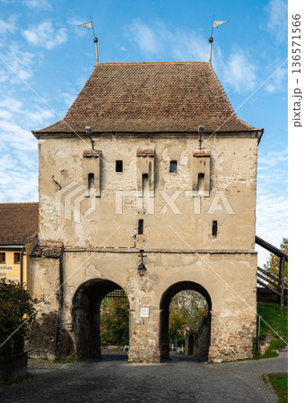 Clock Tower and Historic Gateway in Medieval Sighisoara Citadel Romania