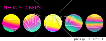 Holographic stickers. Blank rainbow shiny emblems. Vector stock illustration.