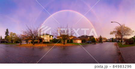 Beautiful Street view in the Residential Neighborhood during a colorful Winter.