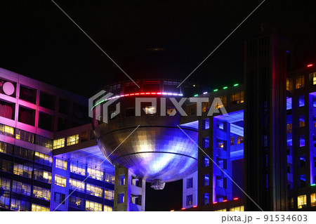 東京都港区、フジテレビ本社ビルとお台場の風景