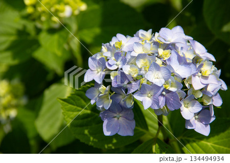 旧芝離宮恩賜庭園の紫陽花(ホンアジサイ) 初夏のやわらかな青と黄緑