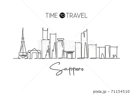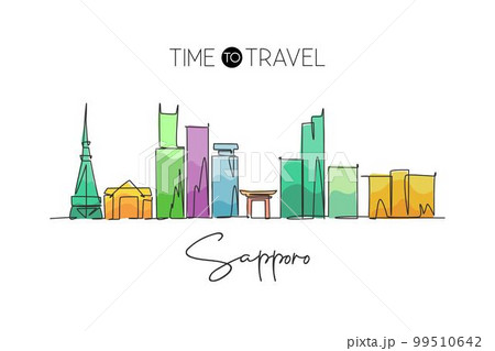 One continuous line drawing of Sapporo city skyline, Japan. Beautiful landmark. World landscape tourism and travel vacation poster. Editable stylish stroke single line draw design vector illustration