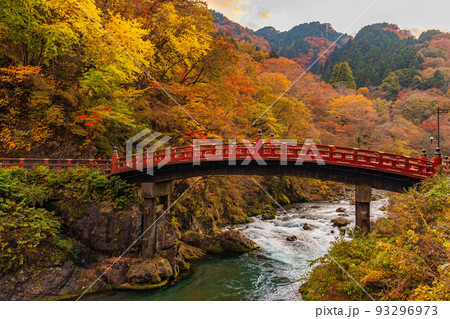 世界遺産「日光の社寺」構成資産 朝の神橋と紅葉