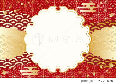 年賀・正月の和風シーンに最適な手書き和柄の背景シームレスパターン_雲のフレームベクター素材_金・赤