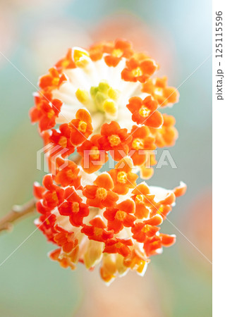 家の周りの草花 四季の色々 早春の公園の木陰 朱色の美しく優美なミツマタの花が咲きました