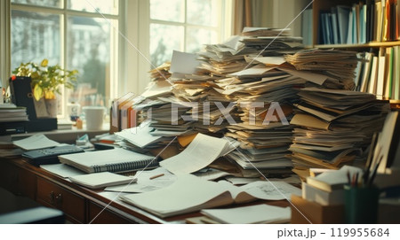 Organized Workplace with Documents, Coffee Cup, and Smartphone on the Desk