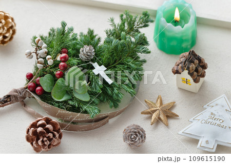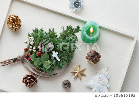 クリスマスのディスプレイ クリスマスツリーとキャンドル