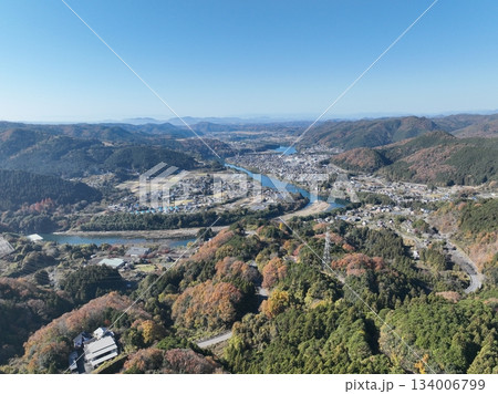 岐阜県八百津の紅葉 杉原千畝記念館付近のドローン撮影風景