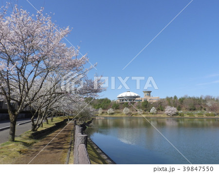 杉焼池と桜並木 ( 2018年3月 岐阜県土岐市 道の駅「土岐美濃焼街道」)